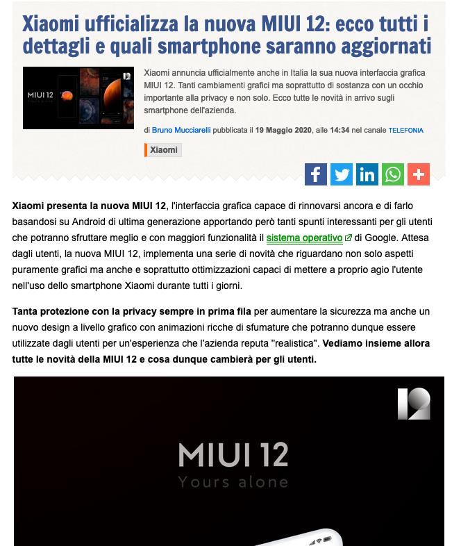 意大利媒體Hwupgrade.it評價:“用戶期待的MIUI 12有著一系列新功能,不僅體現在純設計方面,還有各種性能的提升,使用戶能更加舒服的在日常生活中體驗小米手機。”