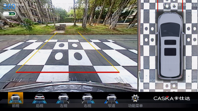 倒車發(fā)現(xiàn)障礙物自動(dòng)切換至360全景影像,并通過雷達(dá)警示線,將汽車與障礙物的距離量化出來。