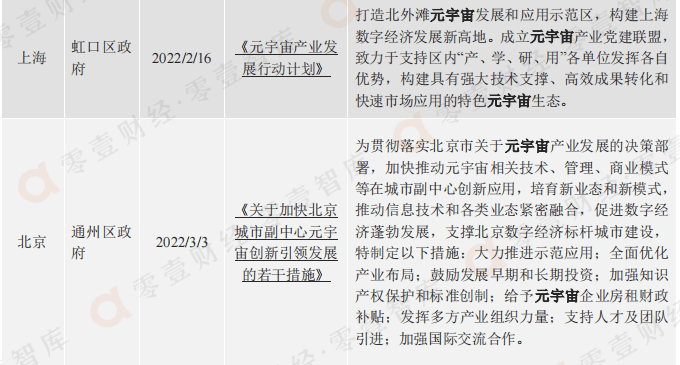 表2:直轄市層面元宇宙產業政策匯總(展示部分)