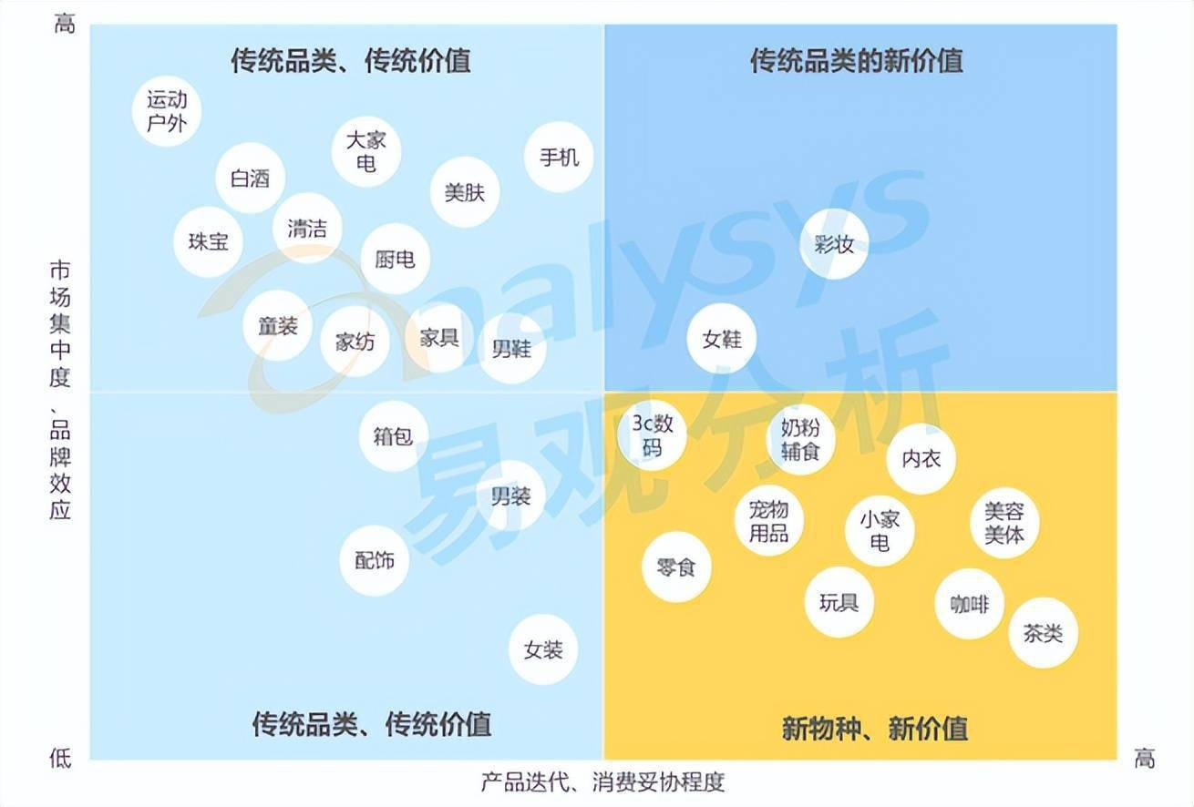 去年,易觀分析提出在“共同富裕&美好生活、新消費(fèi)主導(dǎo)的內(nèi)循環(huán)、科技引領(lǐng)供給側(cè)改革”等宏觀背景下,以天貓為首的電商平臺將更注重增長質(zhì)量和社會價值,具體包括“去中心化、扶持綠色產(chǎn)品、鼓勵新品創(chuàng)新、助力中小品牌、護(hù)航國潮發(fā)展”的歷史重任。