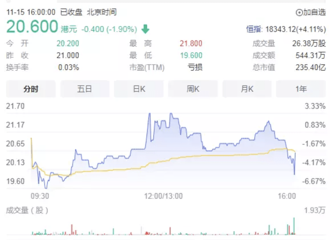 對零跑“燒錢沖銷量”的這樣一份成績單,資本市場顯然是不滿意的,11月15日,零跑汽車在港股汽車股整體繼續(xù)大漲的情況下,逆勢下跌,收盤時下跌1.9%,收于20.60港幣,較上市發(fā)行價每股48港元下跌超50%。