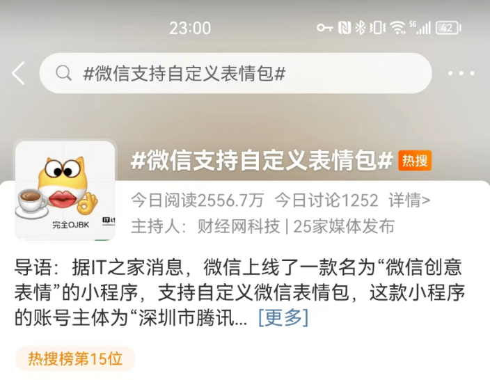 就在昨天,微信又雙叒叕登上了微博熱搜,只因多了一個(gè)新玩法:支持自定義表情包。