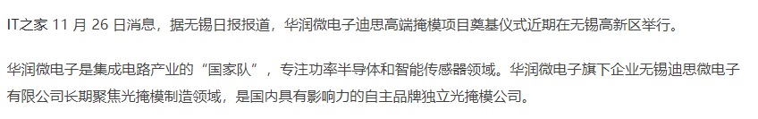 11 月 27 日消息:據(jù)無(wú)錫日?qǐng)?bào)報(bào)道,華潤(rùn)微電子迪思高端掩模項(xiàng)目奠基儀式近期在無(wú)錫高新區(qū)舉行。