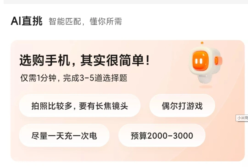 原標(biāo)題:小米商城推出新功能:AI 幫你挑手機(jī)