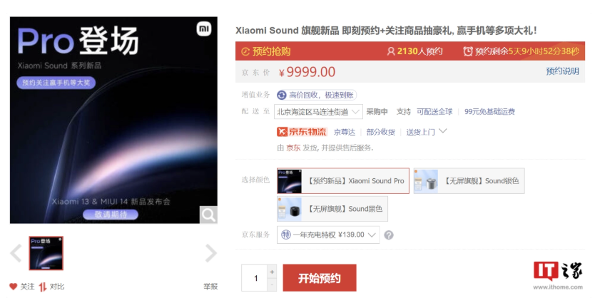 原標(biāo)題:與小米 13 一同發(fā)布,小米 Sound Pro 智能音箱上架預(yù)約