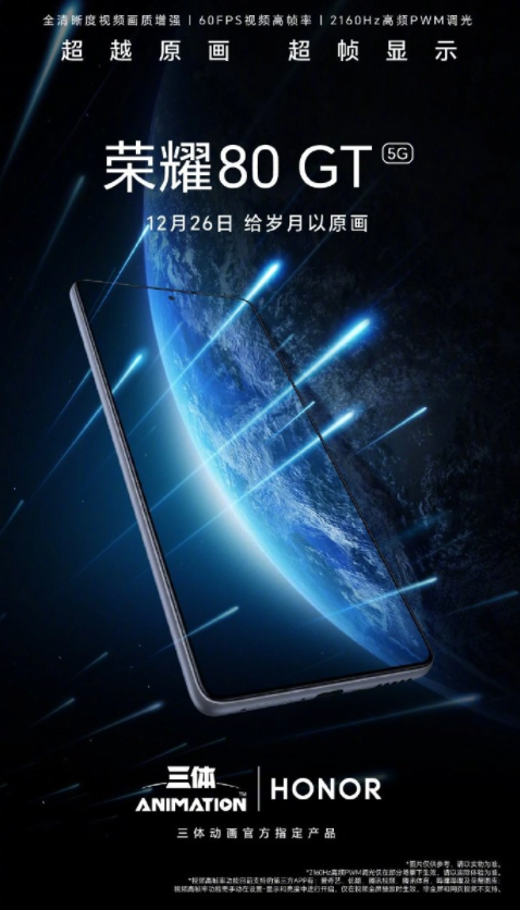 12 月 23 日消息:榮耀官方今日上午表示,榮耀 80 GT 超幀顯示全清晰度視頻畫質(zhì)增強(qiáng),支持 60FPS 視頻高幀率,護(hù)眼方面則支持 2160Hz 高頻 PWM 調(diào)光。