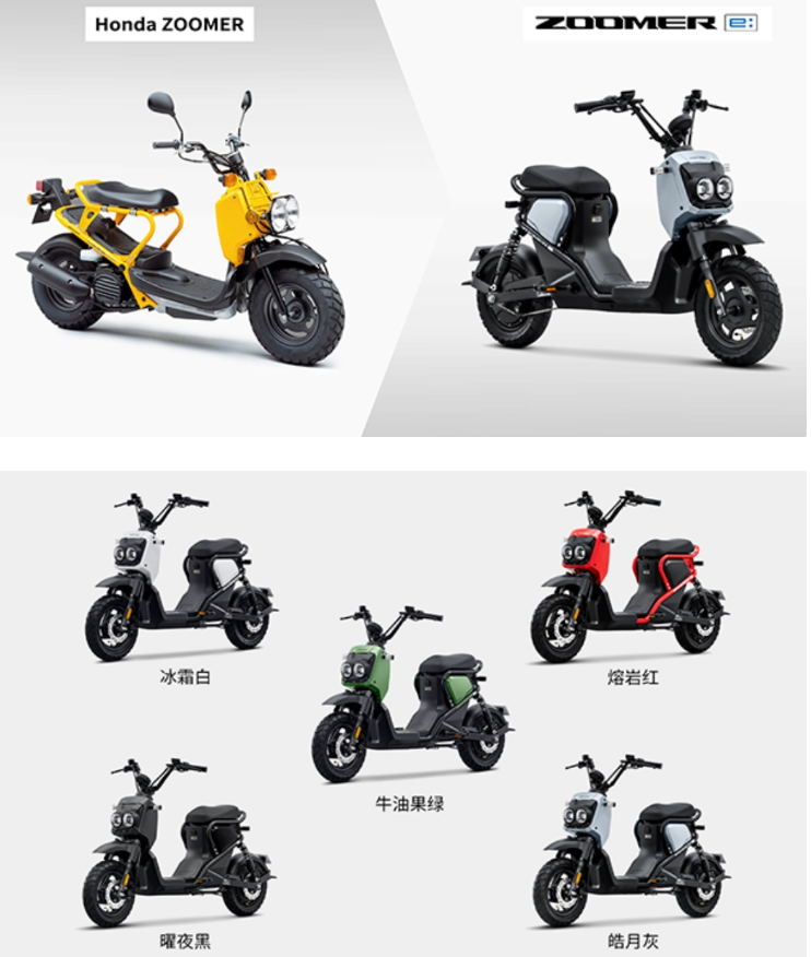 Honda ZOOMER e: 繼承了 Honda ZOOMER 的外觀設計,比較偏向運動款,擁有多項 DIY 擴展設計,可選五款配色,售價 6099 元。