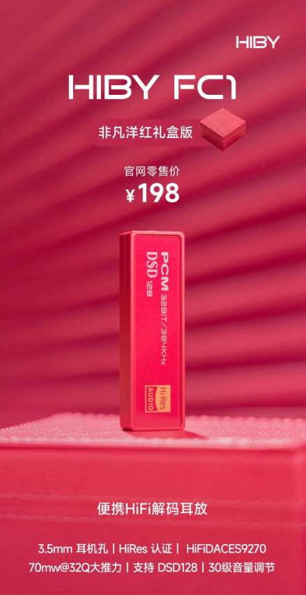 海貝 FC1 非凡洋紅版配備 3.5mm 單端耳機(jī)接口,手機(jī)也能用,適配海貝音樂 App 的 USB 獨(dú)占模式,可解碼各類無損音頻格式,還配有一個(gè)非凡洋紅禮盒。
