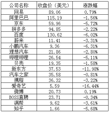 其他熱門中概股中,新東方下跌 11.98%,百度下跌 6.02%,知乎下跌 5.68%,嗶哩嗶哩下跌 5.11%,滿幫下跌 3.61%,攜程下跌 3.22%,汽車之家下跌 0.81%,BOSS 直聘下跌 0.34%。