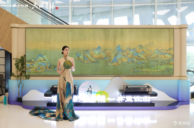 海信以新一代顯示技術(shù)協(xié)力文化傳承,與《只此青綠》共同打造“科技+藝術(shù)”的跨界融合。攜手開展全國各大城市的巡展期間,海信帶來了旗下高端旗艦款激光電視120 L9 Pro,并將2臺120英寸激光電視融合出200英寸“巨幕”效果,令人嘆為觀止。當(dāng)《千里江山圖》緩緩播放,畫卷上的山巒、樹木、橋梁、船只、亭臺樓閣以及人物等皆完美再現(xiàn),仿佛千年畫作穿越回現(xiàn)代。此外,這也讓現(xiàn)場的消費者們親眼見證了海信激光電視國貨新科技的實力,屬于未來的顯示科技力量,在藝術(shù)世界中展現(xiàn)的淋漓盡致。