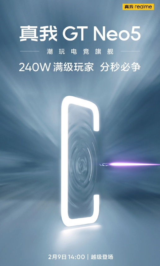 2 月 1 日消息,realme 真我 GT Neo5 將于 2 月 9 日發布,定位“潮玩電競旗艦”。今日上午,realme 真我手機帶來了新機的最新預熱信息,稱真我 GT Neo“充電 30 秒,通話 2 小時”,閃充技術 8 年越級 10 倍。