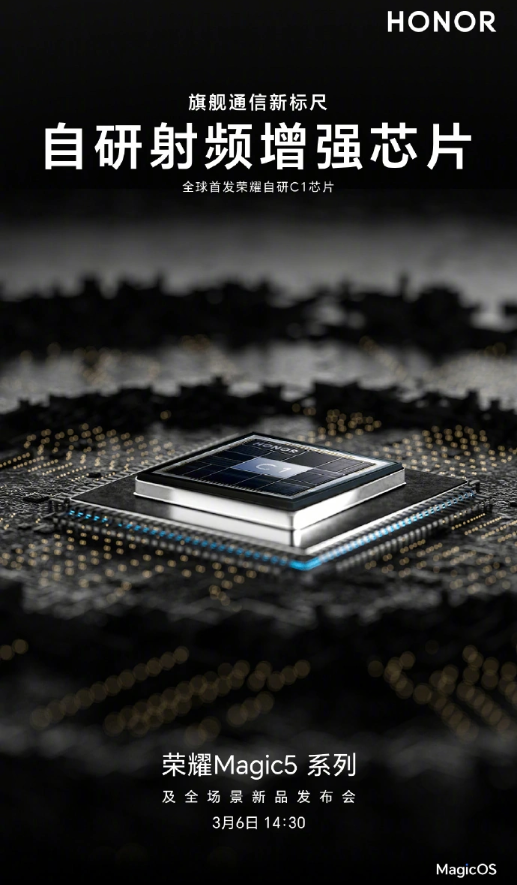 原標題:榮耀 Magic5 / Pro 系列手機將搭載自研射頻增強芯片 C1