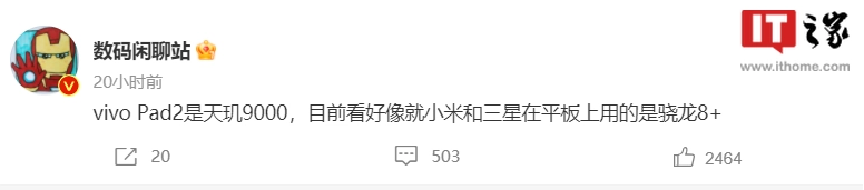 據(jù)微博博主 @數(shù)碼閑聊站 爆料,vivo Pad 2 將在 4 月(或之后)發(fā)布,搭載旗艦或次旗艦平臺(tái)。今天該博主進(jìn)一步稱,vivo Pad 2 平板電腦將搭載天璣 9000 芯片。目前看,僅小米和三星在平板上用的是驍龍 8+ Gen 1 芯片。
