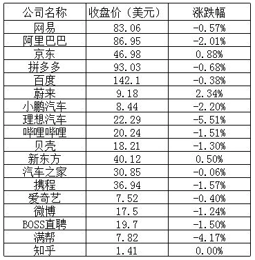 在美上市的熱門(mén)中概股表現(xiàn)如下: