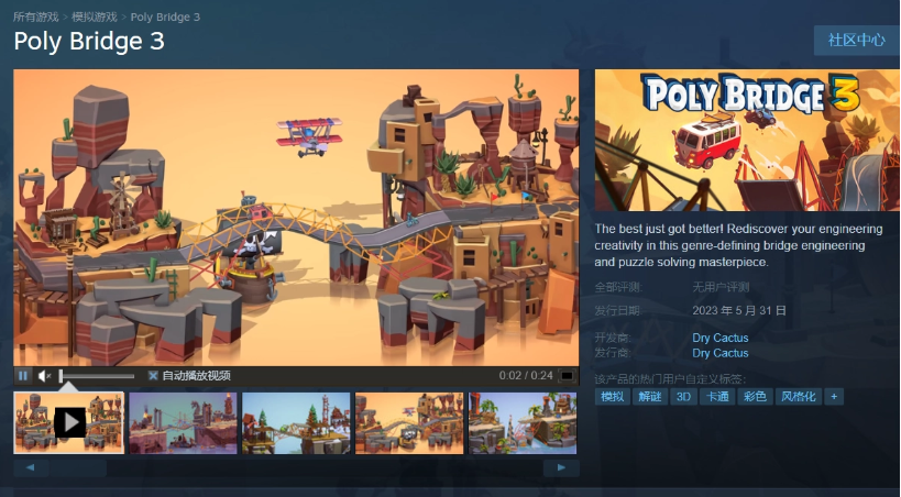 3 月 17 日消息,造橋鬼才游戲第三代《橋梁建筑師 3》(Poly Bridge 3)宣布 5 月 31 日上線 Steam,支持簡體中文和創意工坊。
