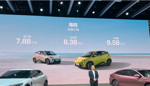 4 月 18 日消息, 在 2023 上海車展上,比亞迪海洋網全新小型電動車海鷗正式亮相并開啟預售,活力版預售價 7.88 萬元;自由版預售價 8.38 萬元,飛翔版預售價 9.58 萬元,同時官方還稱新車將于近期上市。