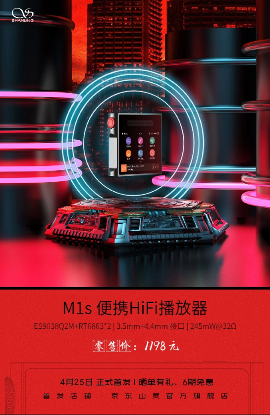 4 月 21 日消息,山靈在今年 2 月份推出了 M1s 播放器,售價 1198 元?,F(xiàn)在,官方又推出了這款播放器的黑紅版,售價同樣為 1198 元,將在 4 月 25 日上市。