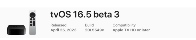 原標(biāo)題:蘋果發(fā)布 tvOS 16.5 Beta 3(20L5549e)更新